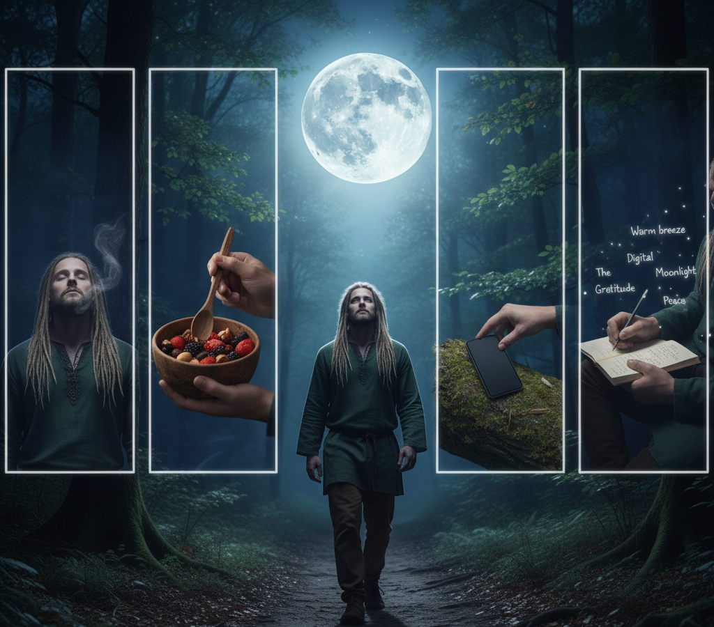 We munch as we swipe, move around while mapping stuff out, yet "chill" with shows on while peeking at our screens. Body stays put - mind races off elsewhere. This never-ending jump between moments drains us hard. That's what feeds tension and worry, plus keeps us from actually living right now.