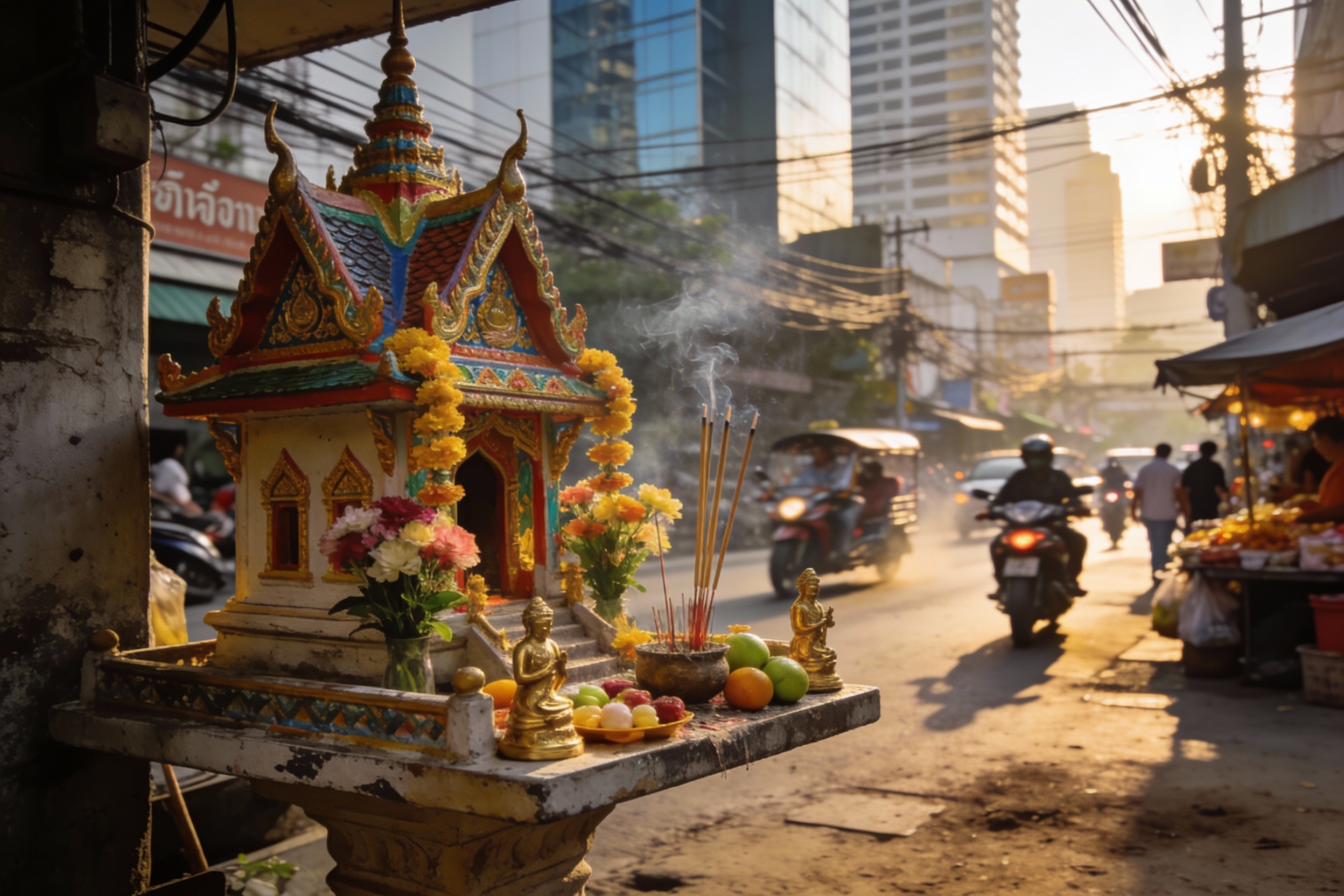 In places like Thailand and Vietnam, small shrines are placed outside homes to honor the land. It acknowledges that we are guests in nature. Even if the street outside is noisy and dirty, the spirit house remains a point of dignity and respect.