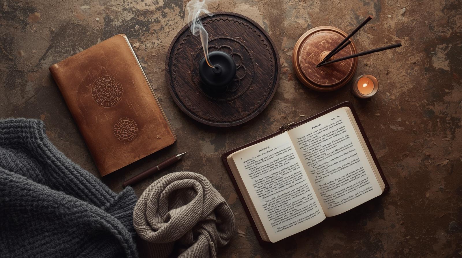 - Real objects, not digital representations. Leather journals with no cloud backup. Candles that burn down. Incense that leaves residue. Weight that can be held.